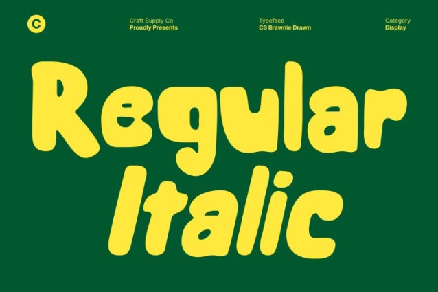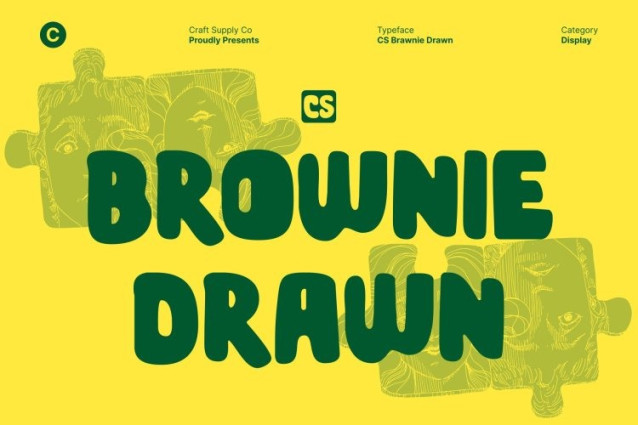 CS Brownie Drawn Font This is a modern display font that delivers boldness wrapped in charm. Its expressive letterforms are enhanced with a hand-drawn texture, giving the font a lively, organic feel. The playful construction instantly grabs attention while radiating cheerful, friendly energy that brings designs to life.
