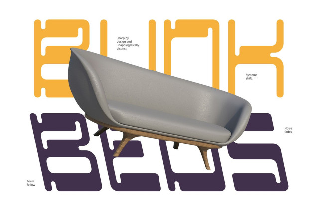 CS Bunker Font is a display font featuring a unique reverse contrast style where the horizontal strokes are noticeably thicker than the vertical ones. This uncommon design choice creates a striking and unconventional look that immediately grabs attention while adding dynamic visual interest and balance to the letterforms.
