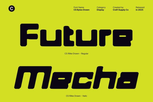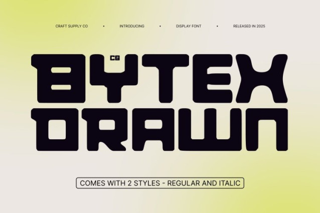 CS Bytex Drawn Font This is a bold sans serif font that captures the spirit of modern technology and digital innovation. Built with clean geometry, sharp edges, and confident proportions, it projects strength, clarity, and precision. The hand-drawn texture subtly softens its rigid structure, adding character while maintaining a futuristic, high-tech aesthetic that commands attention.