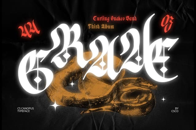Authority and Elegance Ideal for projects that demand a touch of sophistication and gravitas, CS Canopus excels in applications such as formal invitations, historical documents, and vintage or cultural branding. Its bold, ornate design adds a sense of authority and timeless elegance, making it perfect for book titles, prestigious logos, and striking posters that aim to convey a strong, classic identity.