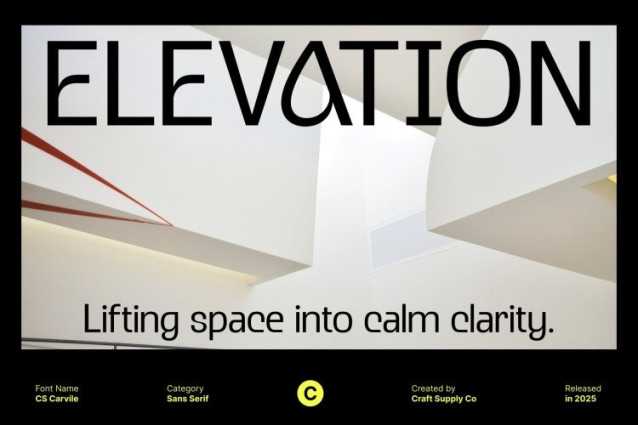 CS Carvile Font This is a modern sans serif font designed with clean geometry and refined curves that set it apart from the typical minimalist style. Its gentle, flowing shapes add a subtle elegance and warmth, creating a fresh and contemporary visual identity. Every letter feels thoughtfully sculpted, giving the font a smooth, modern aesthetic that stands out with ease.
