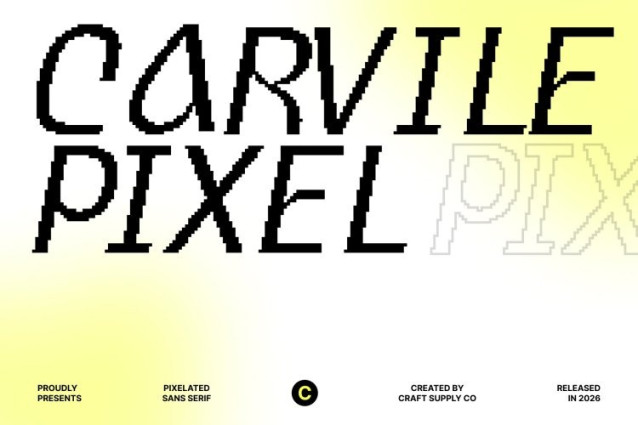 CS Carvile Pixel Font This is a modern sans serif font that combines clean geometry with smooth, relaxed curves, reimagined through a pixel-inspired structure. Its carefully crafted letterforms feel soft and flowing, yet structured with a subtle pixel grid that adds character and visual intrigue.