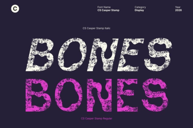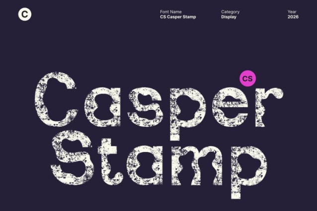 CS Casper Stamp Font This is a display sans-serif font infused with psychedelic flair and enhanced by a distinctive stamp texture. Featuring distorted letterforms, fluid shapes, and playful proportions, this font delivers a bold visual impact. The stamped effect adds a vintage, handcrafted feel that deepens its artistic character while amplifying its expressive, unconventional style.