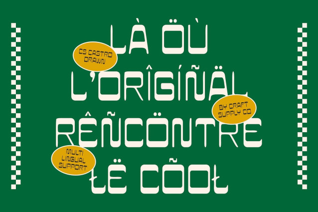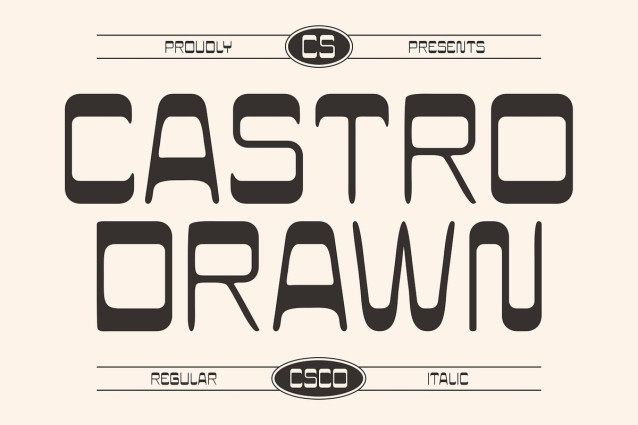 CS Castro Drawn Font is a display sans serif font that masterfully blends reverse contrast with hand-drawn charm. Featuring thick horizontal strokes and thinner vertical lines, its unique reverse contrast structure breaks conventional type design rules, resulting in a bold and unforgettable visual identity. The drawn effect adds an artisanal texture, giving each letter a lively, crafted quality that enhances its character and creative appeal.