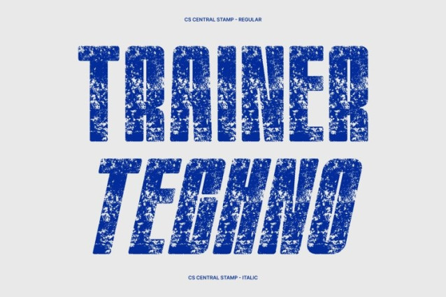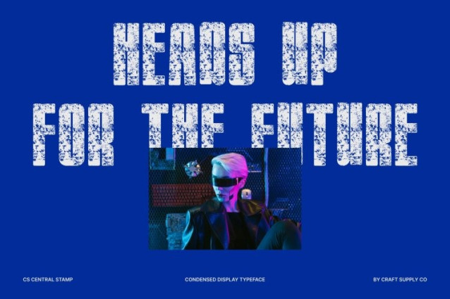 CS Central Stamp Font This is a bold, condensed sans serif font designed to command attention through its compact and powerful form. Its narrow proportions allow designers to maximize space while maintaining strong visual impact, making it ideal for headlines, posters, and striking typographic compositions that demand clarity and confidence.