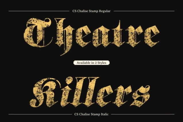 CS Chalise Stamp Font This font display embraces the rich tradition of blackletter typography, offering bold, ornate letterforms that instantly evoke a strong sense of history. Its classic and decorative shapes make every word feel authoritative, artistic, and deeply rooted in cultural heritage.