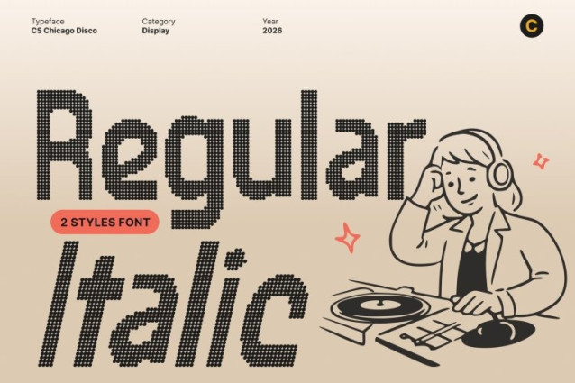 CS Chicago Disco Font This is an edgy, modern display sans serif font that fuses sleek contemporary design with the rhythmic spirit of retro disco culture. Inspired by techno music, digital-era graphics, and neon-lit nightlife, this font delivers a sharp, dynamic presence that feels futuristic, stylish, and confidently timeless.
