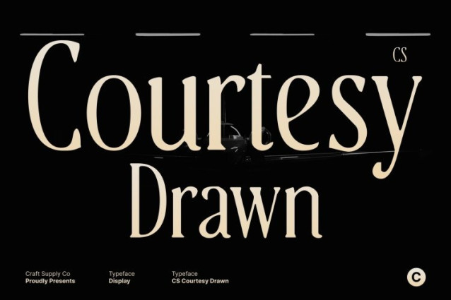 CS Courtesy Drawn Font This font is a slim modern serif font defined by graceful long serifs and clean, minimal shapes. Its refined proportions and balanced structure create a calm, sophisticated presence that feels contemporary and timeless. The slender letterforms give the typeface an airy, composed look, making it especially suitable for layouts that value clarity, elegance, and visual rhythm.