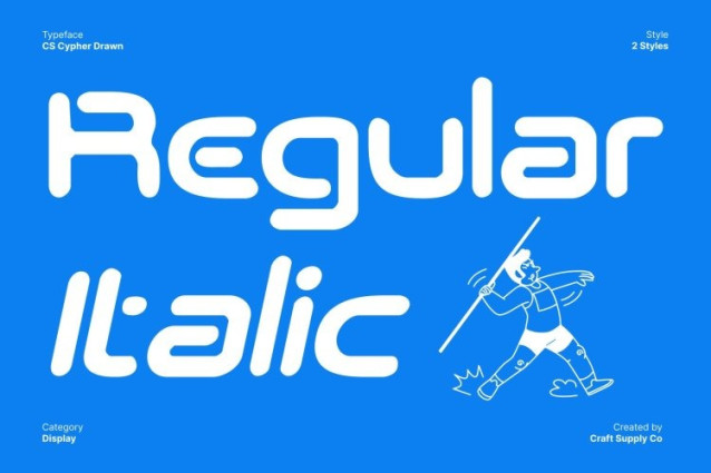 CS Cypher Drawn Font – This is a sleek sci-fi game display font built from precise techno geometry and sharp, angular edges. Its futuristic construction delivers a bold, high-tech impression that feels fast, digital, and forward-looking. Each character projects a sense of cyber energy, making the font instantly eye-catching and perfect for designs that demand a strong futuristic identity.