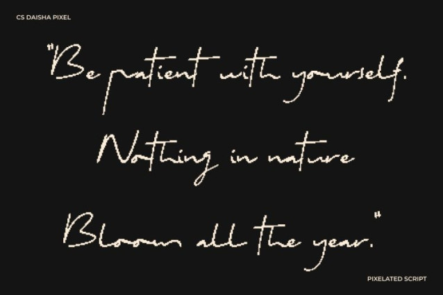 CS Daisha Pixel Font This is a soft and expressive handwritten script font inspired by the sincerity of natural pen strokes, refined with subtle pixel precision. Designed to feel personal and warm, it captures the charm of real handwriting while adapting beautifully to modern digital environments.