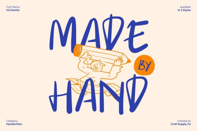 CS Damita Font This is a handwritten display font designed to capture the soft, expressive beauty of real pen strokes. Its gentle curves and organic movement create a soothing handwritten feel that looks sincere and inviting. Each letter carries a touch of natural charm, making the font perfect for designers who want to communicate authenticity, warmth, and personal connection through their typography.
