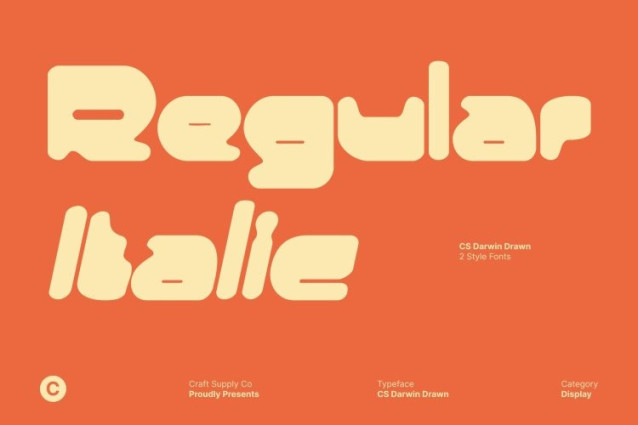 CS Darwin Drawn Font This is a retro-futuristic display font inspired by the bold visual culture of the early 2000s. Rooted in Y2K aesthetics, this typeface blends clean geometry with smooth, futuristic curves, capturing the spirit of an era defined by digital optimism and experimental design. Its bold construction gives it strong presence, while the drawn texture adds a human, expressive edge.