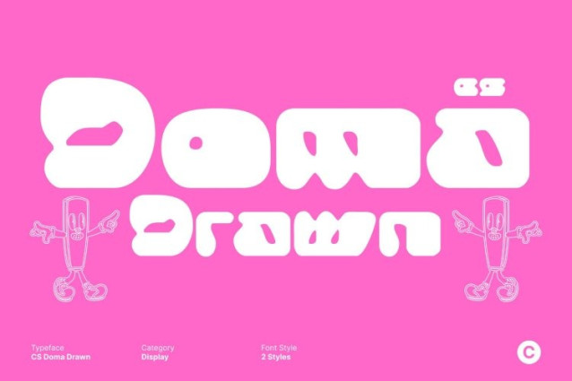 CS Doma Drawn Font This is a bold Y2K display font inspired by the vibrant visual culture of the early 2000s. Its expressive letterforms echo the era’s obsession with digital optimism, futuristic styling, and flashy design language. With shimmering gradient-ready shapes and confident outlines, this font instantly delivers a nostalgic yet forward-looking vibe that feels playful, bold, and unapologetically energetic.