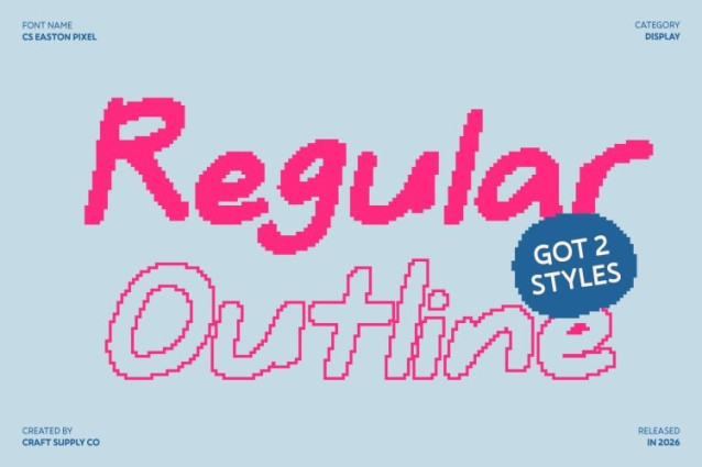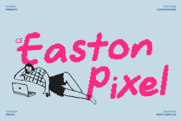 CS Easton Pixel Font This captures the heart of creativity through its natural handwritten flow combined with a distinctive pixel texture. Blending a casual sans serif structure with freehand expression, this font feels warm, and full of personality. Each stroke appears personal and organic, while the pixel style adds a nostalgic digital twist that feels both playful and eye-catching.