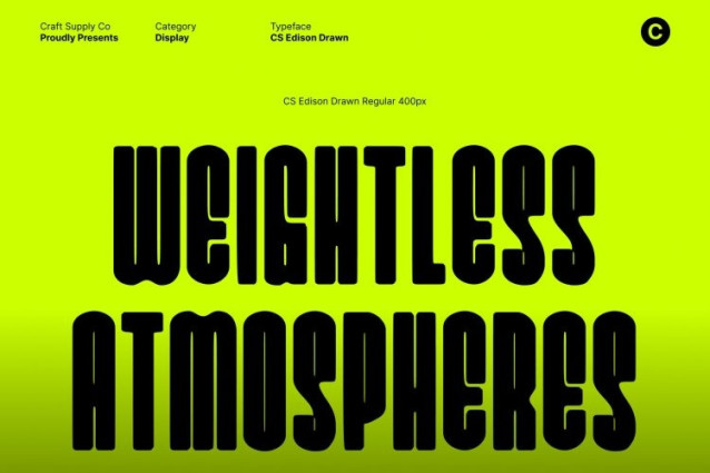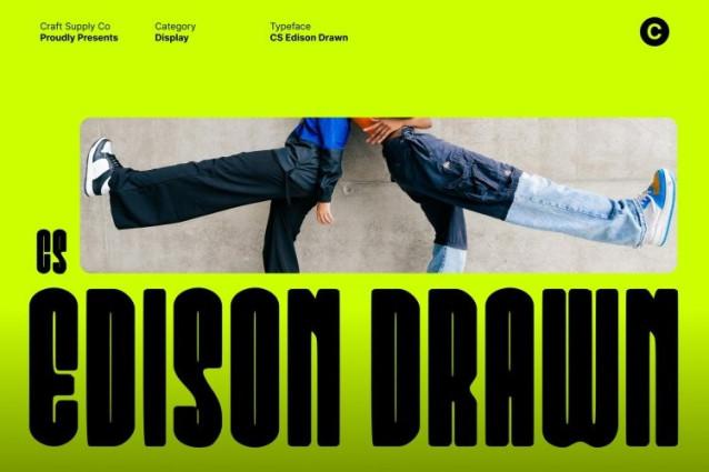 CS Edison Drawn Font – This is a condensed sans serif font built for strength, clarity, and efficiency. Its compact proportions allow text to make a powerful statement even in tight spaces, making it highly effective for bold headlines and space-conscious layouts. The clean, modern construction keeps the letterforms clear and legible, while the narrow width adds intensity and visual punch to every line of text.