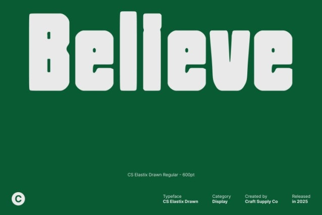 CS Elastix Drawn Font This is a bold display sans serif font designed to command attention in every context. Its strong, clean letterforms convey confidence and authority, making it perfect for headlines, posters, and branding projects that need to stand out. The bold structure ensures maximum visual impact, capturing the viewer’s focus instantly.
