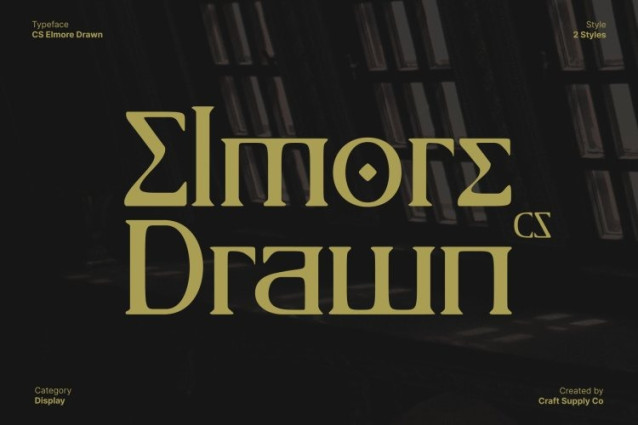 CS Elmore Drawn Font This is a display serif font that blends modern classic design with the enduring elegance of Ancient Greek–inspired letterforms. Its sharp yet refined serifs are paired with balanced proportions, while the drawn texture adds a subtle handcrafted quality. This combination creates typography that feels cultured, expressive, and rich with historical character, yet perfectly suited to contemporary design.