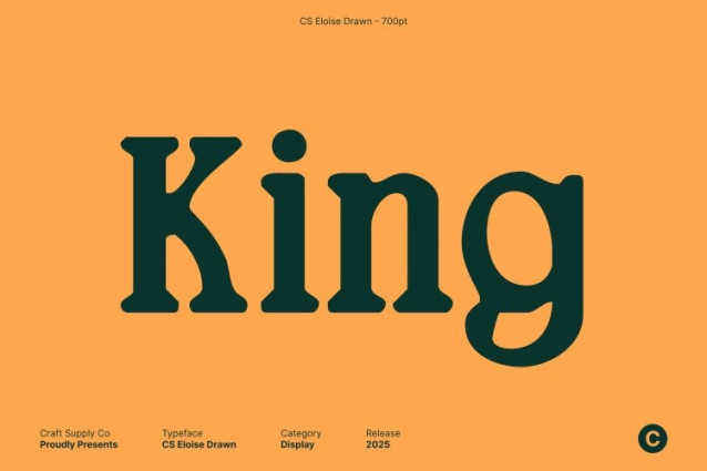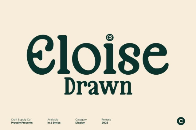 CS Eloise Drawn Font – This is a modern retro inspired serif font that beautifully blends classic 90s nostalgia with a fresh, contemporary attitude. Its letterforms carry clean geometry softened by familiar retro curves, creating a distinctive aesthetic that feels both timeless and stylishly current.