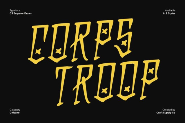 CS Emperor Drawn Font This is a display font shaped by the bold spirit of Chicano graffiti culture. Its decorative strokes deliver attitude, presence, and unmistakable street-style character. Every curve and flourish is crafted to feel expressive and intentional, giving your designs a dynamic personality that instantly captures attention.
