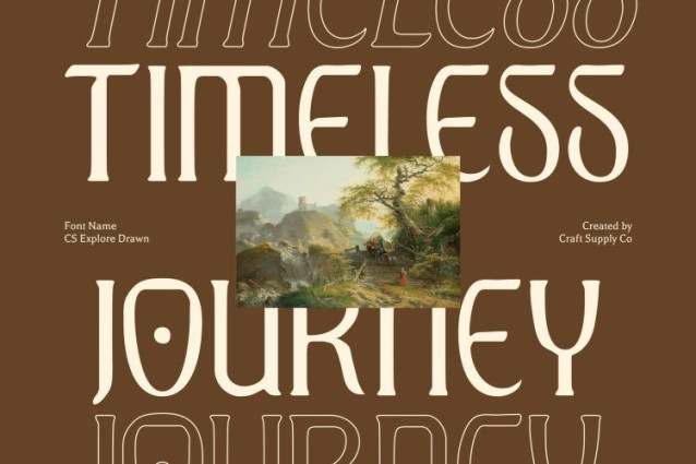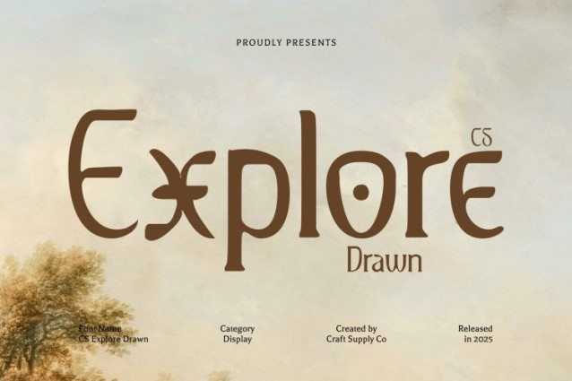 CS Explore Drawn Font This is a modern display serif font that combines clean, contemporary letterforms with intricate decorative touches. Each character is designed with precision to exude sophistication, artistry, and a polished visual appeal, making it perfect for projects that demand elegance and attention to detail.