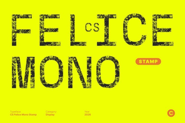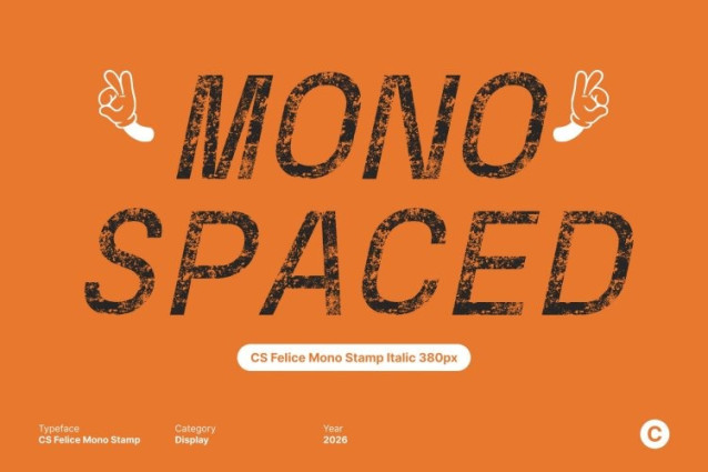 CS Felice Mono Stamp Font This is a monospaced sans-serif font designed with equal-width characters, ensuring consistent spacing throughout every line of text. This structural uniformity enables precise alignment and excellent readability. The monospaced construction guarantees visual accuracy while maintaining a disciplined and orderly layout.
