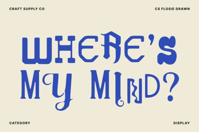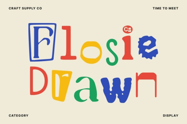 CS Flosie Drawn Font This is a ransom style display font created to break norms and ignite visual disruption. Its chaotic construction, inspired by cut-and-paste ransom lettering, injects every design with rebellious personality and dramatic flair. The mismatched shapes and irregular forms create an edgy, untamed aesthetic that instantly commands attention.