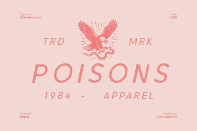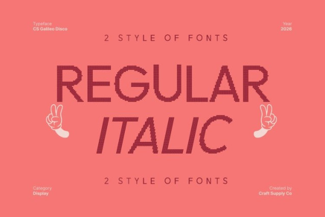 CS Galileo Disco Font This is a modern sans serif font that blends minimalist precision, clean lines, and geometric balance with a vibrant disco attitude. Its evenly structured letterforms maintain clarity and order, while the disco-inspired styling introduces a sense of rhythm, movement, and visual excitement, transforming clean typography into something bold, lively, and expressive.
