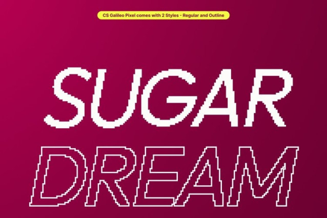 CS Galileo Pixel Font This is a modern sans serif font that merges clean geometric construction with subtle pixel precision. Its minimalist structure, sharp lines, and evenly balanced proportions create a typeface that feels contemporary, efficient, and digitally refined perfect for today’s screen-focused designs.