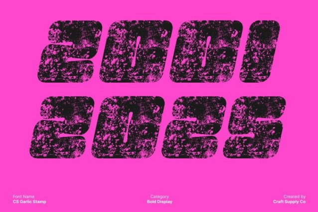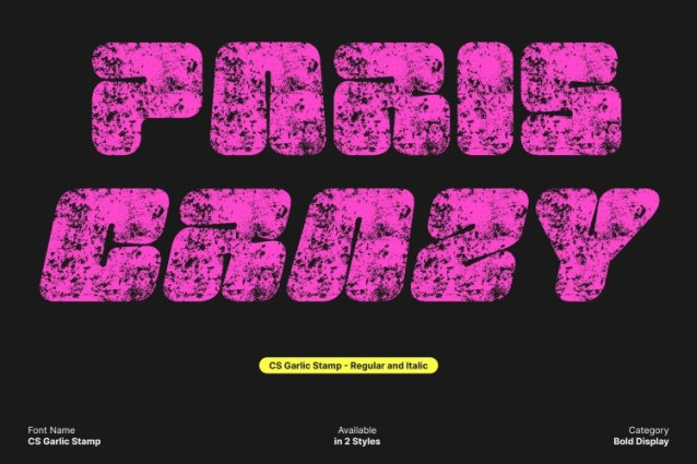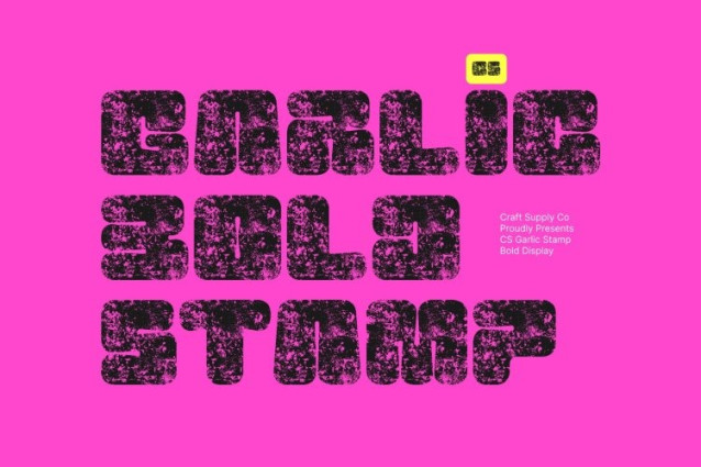 CS Garlic Stamp Font This is designed to dominate the visual space. With its thick, sturdy, and blocky letterforms, this display font delivers powerful presence and undeniable impact. Every character feels strong and confident, making it ideal for posters, headlines, and branding that must be seen and remembered.