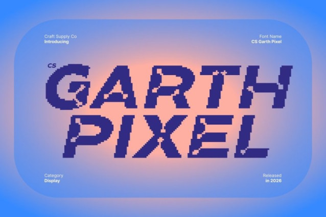 CS Garth Pixel Font This is a modern sans serif font that combines clean geometry with distinctive inktrap details and subtle pixel-inspired precision. Designed for contemporary digital-forward projects, this typeface delivers a sharp, confident appearance while introducing visual depth that elevates standard modern typography.