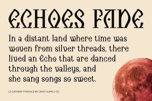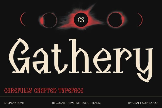This font is made for personal use. Get the full version of the fonts if you want to use it for commercial purposes by purchasing the licenses here: https://creativemarket.com/craftsupplyco/286224772-CS-Gathery-%E2%80%93-Display-Serif-Font?u=fontlot123