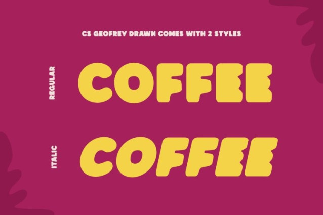 CS Geofrey Drawn Font This is a bold sans serif display font crafted with strong, contemporary shapes that immediately capture attention. Its geometric yet dynamic letterforms create a confident and modern appearance, making it ideal for projects that require a bold typographic statement. Every character is carefully designed to maintain balance, structure, and visual impact, ensuring that your text stands out with authority and style.