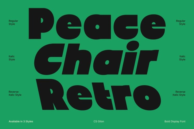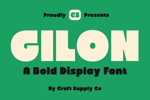 CS Gilon Font – This is a chunky sans serif font designed to capture attention with its thick, impactful shapes. Its geometric construction gives it a modern and structured feel, while playful curves add a fun and approachable personality. This combination makes the font perfect for projects that need to stand out instantly.