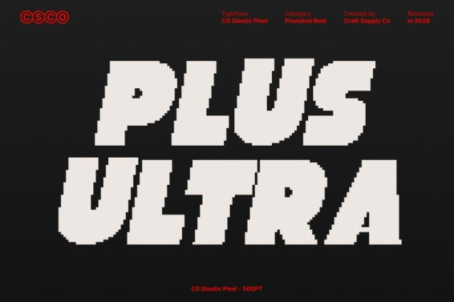 CS Glastic Pixel Font This is a modern sans serif display font built to deliver bold visual impact through clean, pixel-refined geometry. Strong shapes and confident proportions create an immediate presence that feels modern, expressive, and digitally savvy. Its precise construction ensures clarity while maintaining a playful, contemporary attitude.