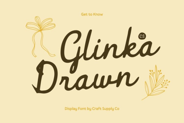 CS Glinka Drawn Font This is a modern script font that embraces a clean, minimalist aesthetic with a soft feminine sensibility. Flowing cursive strokes and gentle curves create a graceful rhythm, while the drawn effect introduces subtle handcrafted details that make each letter feel personal, warm, and naturally expressive. The result is an elegant script that feels both contemporary and timeless.