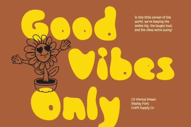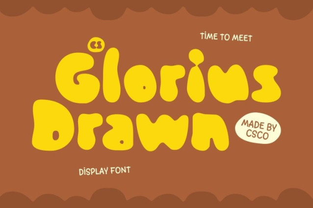 CS Glorius Drawn Font This is an energetic etchy display font that combines bold, hand-drawn strokes with a slightly irregular yet balanced design. Each letterform carries a sketch-like, spontaneous quality that radiates fun, cheerfulness, and approachability. Its whimsical personality makes it ideal for projects that need to capture attention and convey playful energy, giving your designs a warm and inviting visual impact.