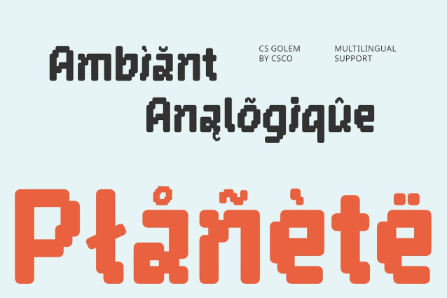 Strong Structure with Playful Energy With a distinctly geometric and monospaced design, CS Golem delivers a structured yet expressive feel. Each character is crafted with a bold rhythm and visual consistency, creating a sense of order that pairs perfectly with playful, tech-driven content. It’s a font that balances nostalgia with strength.