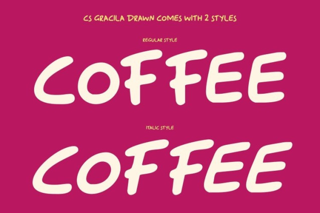 CS Gracila Drawn Font This is a bold handwritten display font created to deliver lively energy and youthful charm. Its confident strokes and expressive hand-drawn forms give every letter a strong personality, making the font feel spontaneous, fun, and full of life. The drawn texture adds a natural, handcrafted character that enhances its playful appeal.