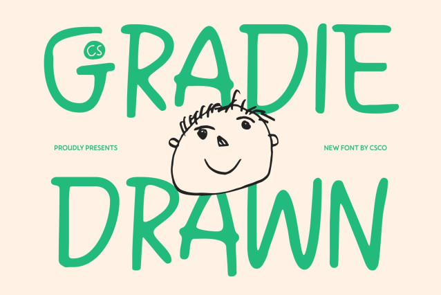 CS Gradie Drawn Font – This is a handwriting-inspired display font that captures the warmth and spontaneity of real pen strokes. With a touch of playful, childlike messiness, each character flows naturally, creating an authentic, handcrafted feel. The drawn effect gives every letter texture and personality, making your designs feel lively, expressive, and full of youthful energy.