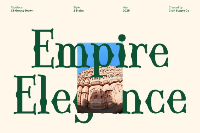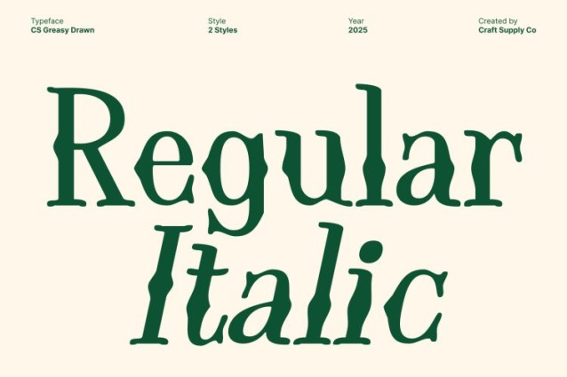 CS Greasy Drawn Font This font brings together the timeless elegance of Uncial letterforms and the decorative flair of Tuscan styling. Its unique structure echoes ancient scripts while adding distinctive flared details that elevate each character. This fusion creates a display font that feels historic, refined, and visually captivating perfect for designers seeking a typeface with deep cultural resonance.