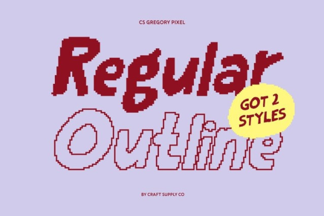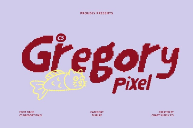 CS Gregory Pixel Font This is a cheerful display font that blends modern sans serif structure with the free spirit of handwritten expression, enhanced by a distinctive pixel style. Each character feels slightly irregular yet lively, creating typography that feels spontaneous, human, and full of personality. The pixel construction adds a nostalgic digital touch, giving the font a fun, retro-tech attitude.