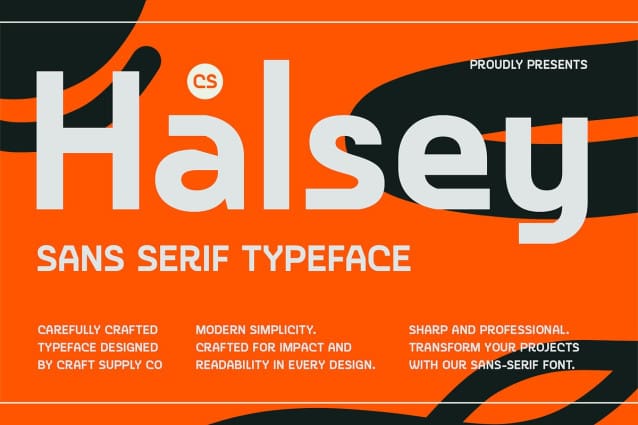 CS Halsey delivers a professional and contemporary impression, ideal for businesses operating in dynamic and modern environments. Its straightforward design enhances the visual identity of brands, ensuring consistency and clarity across different media.