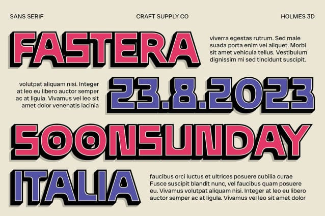 Ideal for Various Designs Perfect for logos, titles, promotional graphics, and other projects, CS Holmes 3D ensures your text stands out and commands attention. Its 3D effect enhances the visual appeal, making it an excellent choice for designs that require a strong and impactful font.