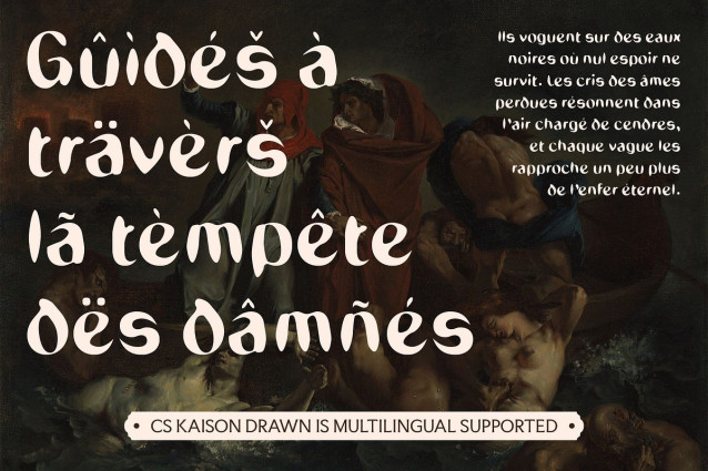 CS Kaison Drawn Font – This is a classic display typeface that blends the timeless essence of gothic lettering with a modern boldness. Its letterforms are tall, strong, and assertive, marked by sharp contours, high contrast, and dramatic silhouettes that naturally command attention.