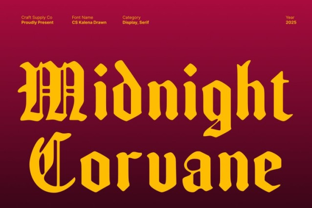 What sets this font apart is its handcrafted drawn effect. Subtle irregularities and textured lines give each letter a unique, handmade quality that softens its sharp structure. This artistic finish adds warmth and character, transforming traditional Blackletter forms into something more dynamic, textured, and visually engaging.