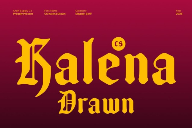 CS Kalena Drawn Font This brings the timeless elegance of Blackletter typography into a bold display style. Its strong strokes, intricate shapes, and historic letter structures create an instantly recognizable Gothic presence. Each character embodies tradition and authority, making the font a powerful choice for dramatic and expressive design work.