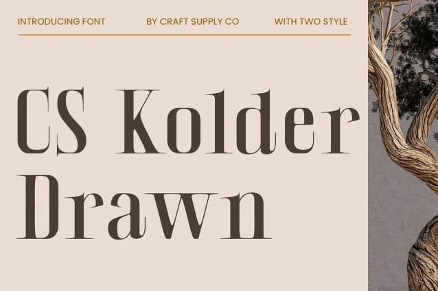 CS Kolder Drawn Font is a modern serif font that combines the sophistication of sharp, well-defined serifs with a creative, hand-drawn effect. The elegant, clean lines of the serifs lend a professional, refined appearance, making it ideal for projects that require a touch of luxury and formality. The sharp edges and structured letterforms contribute to a classic, authoritative look.