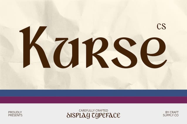 Ideal for Artistic and Vintage Designs CS Kurse shines in designs that require a classic, antique vibe with an artistic and elegant twist. Its unique letterforms make it a perfect choice for branding that aims to evoke nostalgia, or for projects that celebrate vintage or historical themes.