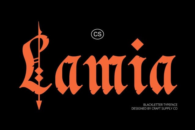 CS Lamia Font is a striking blackletter display font characterized by its sharp, bold, and intricately decorative letterforms. This font draws inspiration from the iconic style of medieval scripts, encapsulating an era of rich history and artistry that evokes a sense of drama, formality, and vintage charm. The intricate design of each letter gives CS Lamia a unique and authoritative presence, making it a standout choice for projects that require a visually striking and majestic touch.
