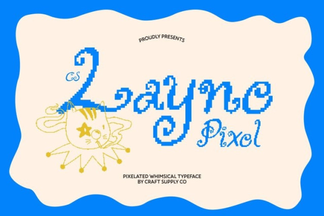 CS Layne Pixel Font This is a distinctive display font infused with fantasy charm and imaginative spirit, elevated by a playful pixel style. Its creative letterforms and whimsical details bring a sense of magic and individuality, turning simple text into expressive visual statements. The pixel touch adds a nostalgic digital flavor that feels eye-catching and full of character.